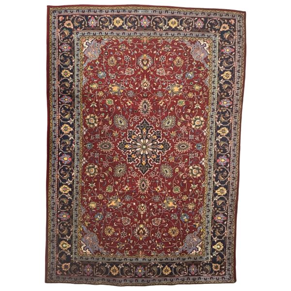 410 x 304cm Kashan Persian Rug – Navy & Red Floral Medallion Design