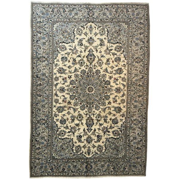 286 x 193cm Hand Knotted Medallion Beige Persian Kashan Rug