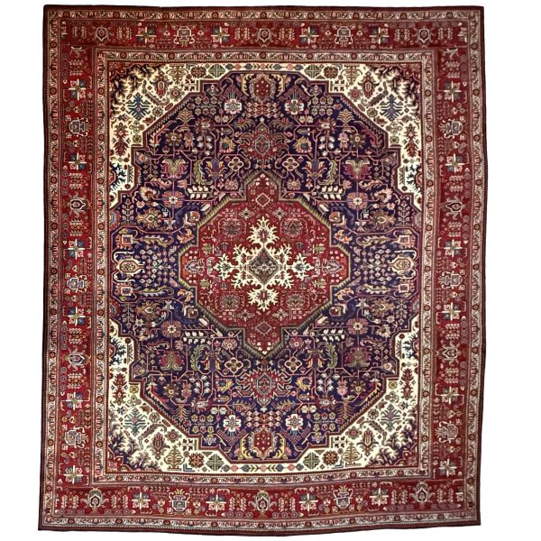 373 x 300cm Hand Knotted Geometric Design Navy Persian Tabriz Rug
