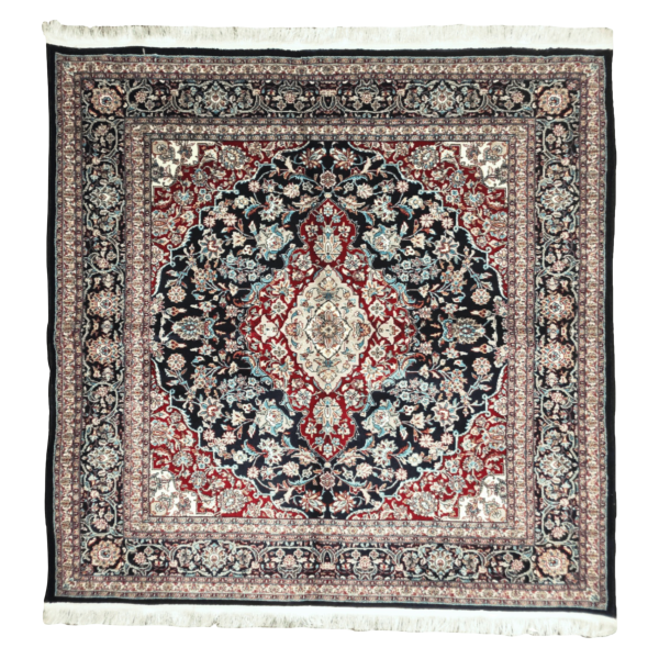 150cm x 150cm Persian Qum Silk Navy Blue Medallion Machine Made Rug