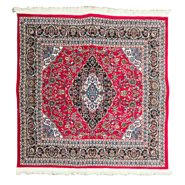 150cm x 150cm Persian Kerman Laver Red Medallion Design Machine Made Rug