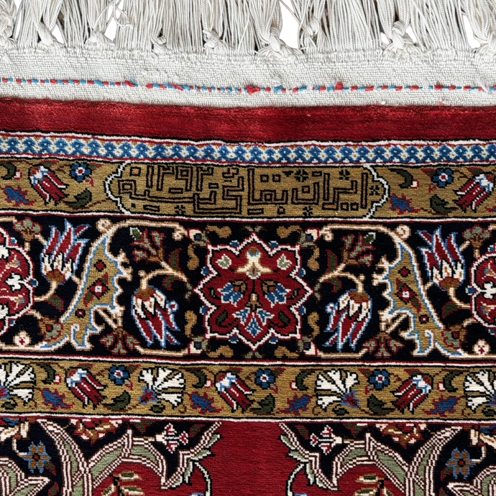 Qum silk rugs are renowned for their fine knotting, artistic storytelling, and use of pure silk throughout. This piece represents that tradition clearly, combining cultural depth, family history, and refined Persian artistry in a collectible textile artwork.