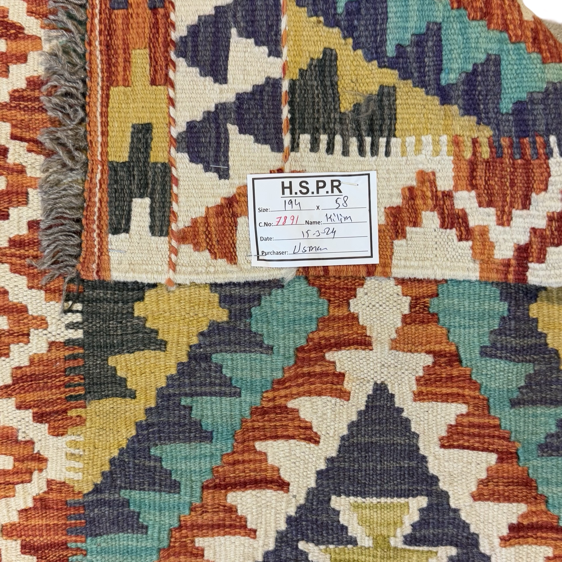 194 x 58cm Hand Woven Afghan Kilim Chobi Runner Rug