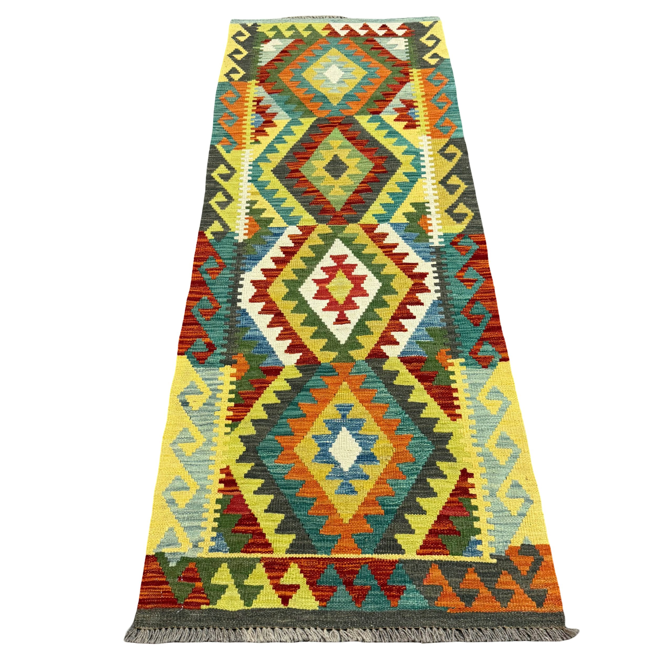 202cm x 76cm Hand-Woven Afghan Kilim - Runner Rug Original price was: R3,800.00.Current price is: R1,900.00.