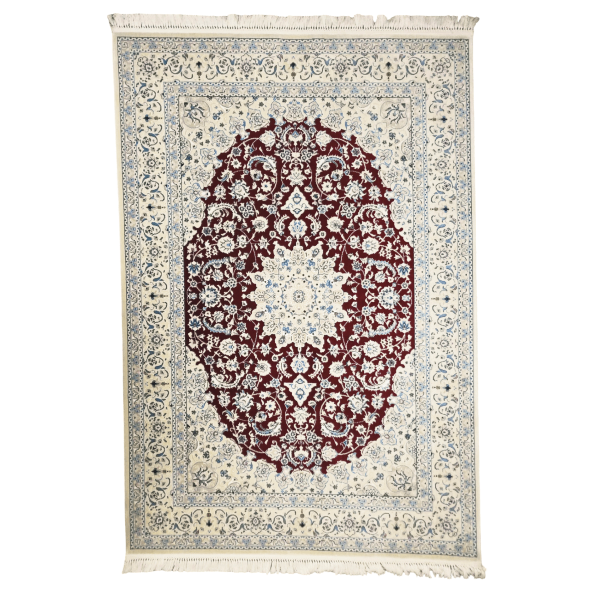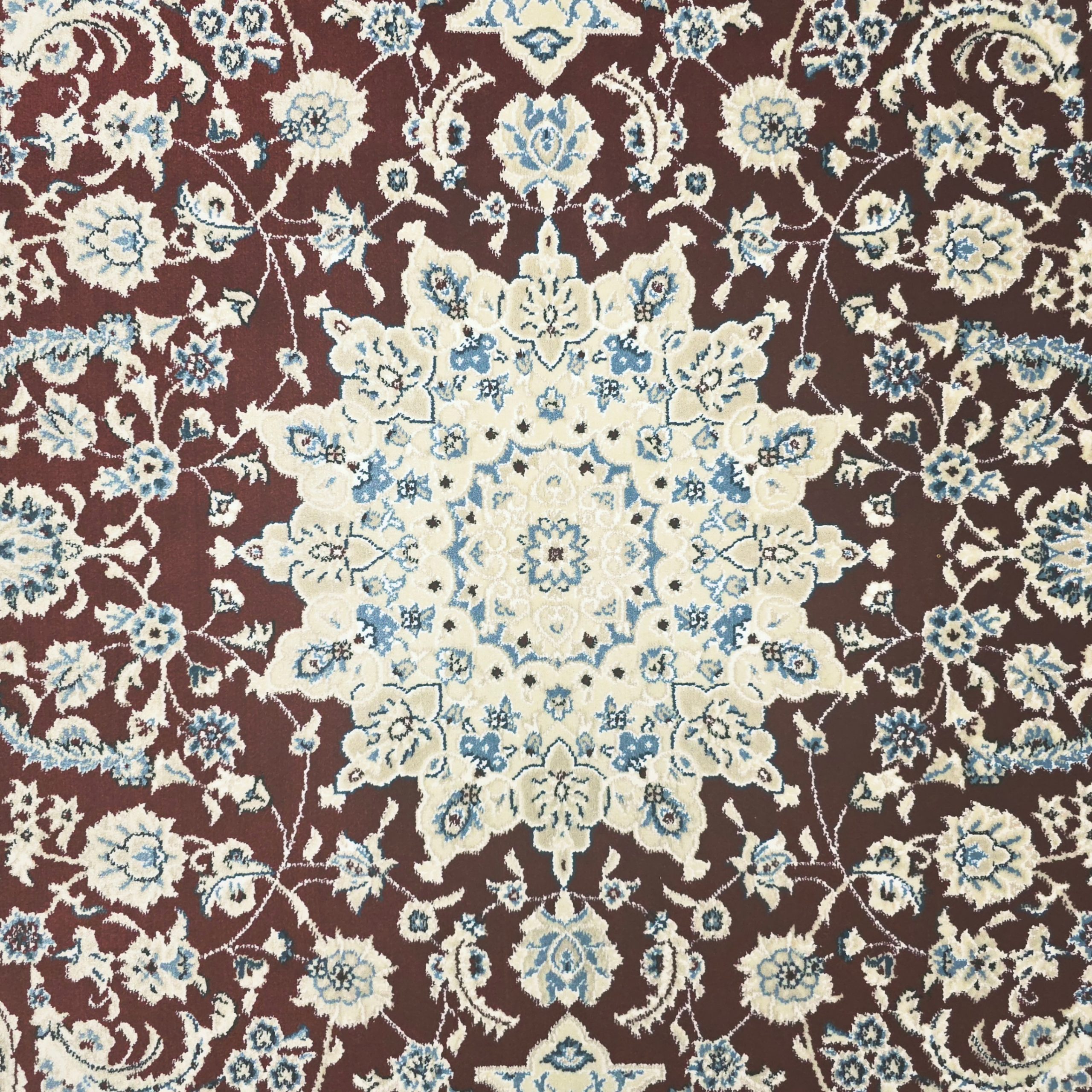 Colors in this rug include: Cream, Red, Blue