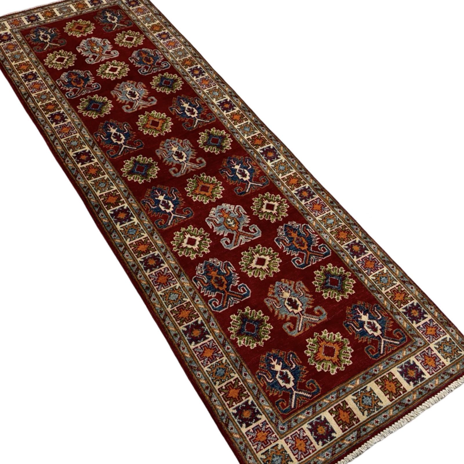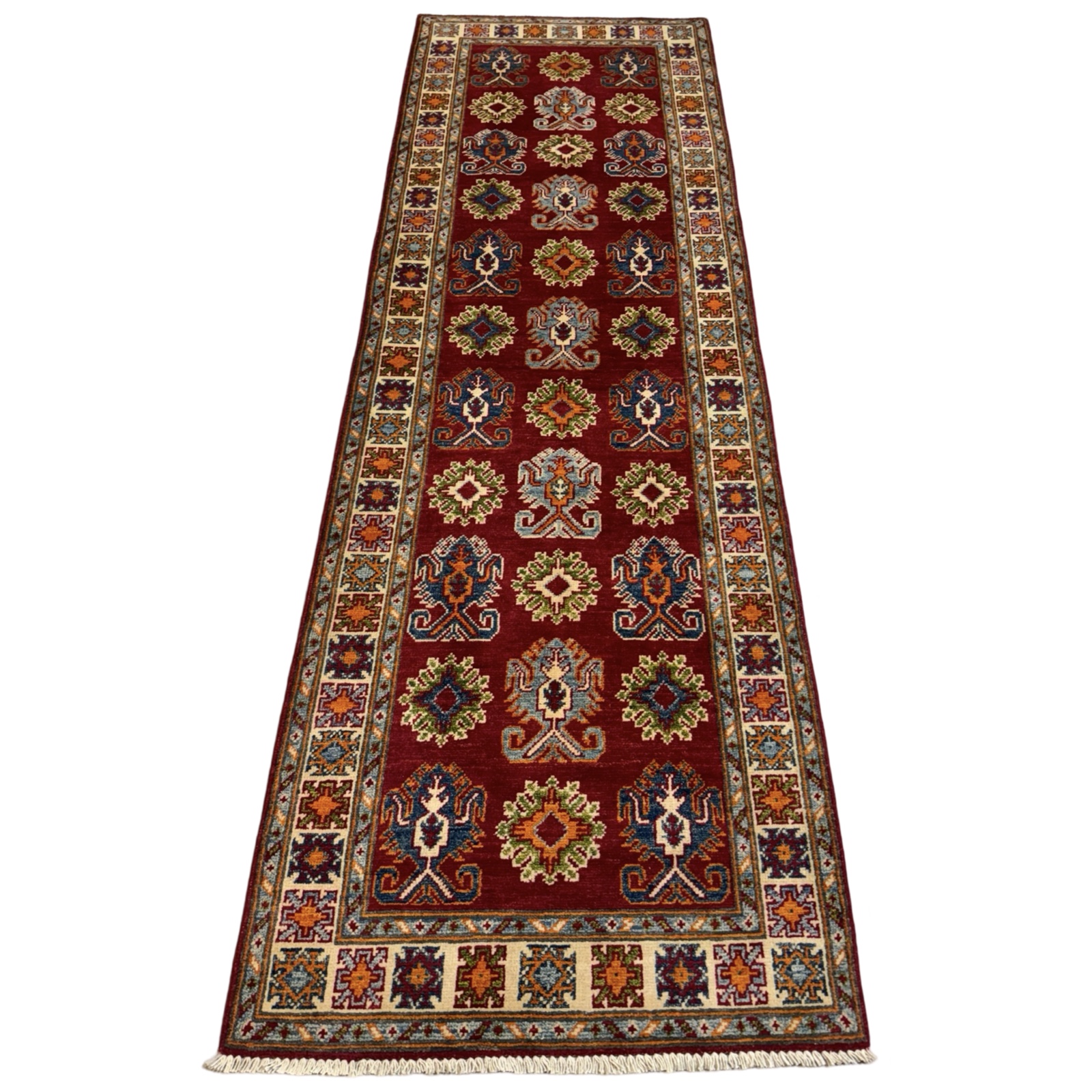293 x 73cm Hand Knotted Afghan Kazak Wool Runner Rug Original price was: R10,800.00.Current price is: R5,350.00.