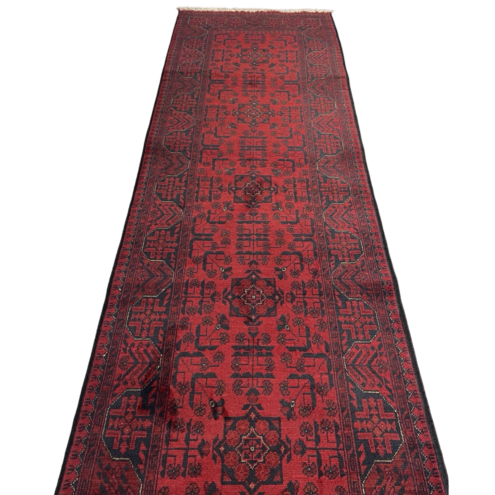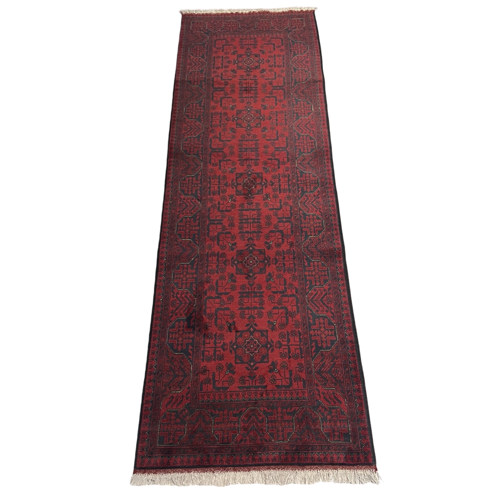 285 x 78cm Hand Knotted Afghan Akhche Wool Runner Rug Original price was: R6,000.00.Current price is: R3,000.00.